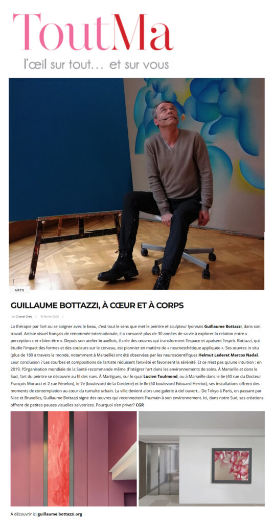 Découvrez Guillaume Bottazzi, artiste visuel français pionnier et leader dans le domaine de la neuroesthétique appliquée, où l’art rencontre les neurosciences pour améliorer le bien-être mental. Avec plus de 33 ans de création en Asie, en Europe, aux États-Unis et au-delà, Bottazzi a réalisé plus de 180 œuvres d’art spécifiques à des sites pour des espaces publics.
